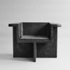 Dining Cushion je inspirován architektonickým hnutím brutalismu z poloviny 20. století. Každý kus je ručně malovaný, aby vytvořil texturovaný, jedinečný povrch. Kolekce Brutus s důrazem na jemnou rovnováhu mezi ostrými architektonickými liniemi a poněkud měkčí křivkou v oblasti zad a loketní opěrky je sochařským výrazem s přesvědčivým komfortem sezení.