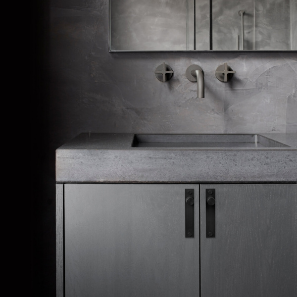 A pair of furniture knobs made from solid brass, smoked bronze, stainless steel and black anodised metal. These knobs feature our signature, diamond-cut, cross-knurl pattern. They come complete with brushed brass backplates and are fixed with brass coin screws. They work great on cabinet doors, cupboards, kitchen units and just about anything that can open.