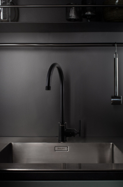 A single lever kitchen tap mixing warm and cold, aerated water. Built from rough-cast and precision machined solid metal in Italy, it features our signature cross-knurl lever and linear-knurl aerator cap. The tap is finally refined by hand and finished with a subtle acid-etched B+P insignia.