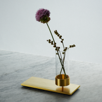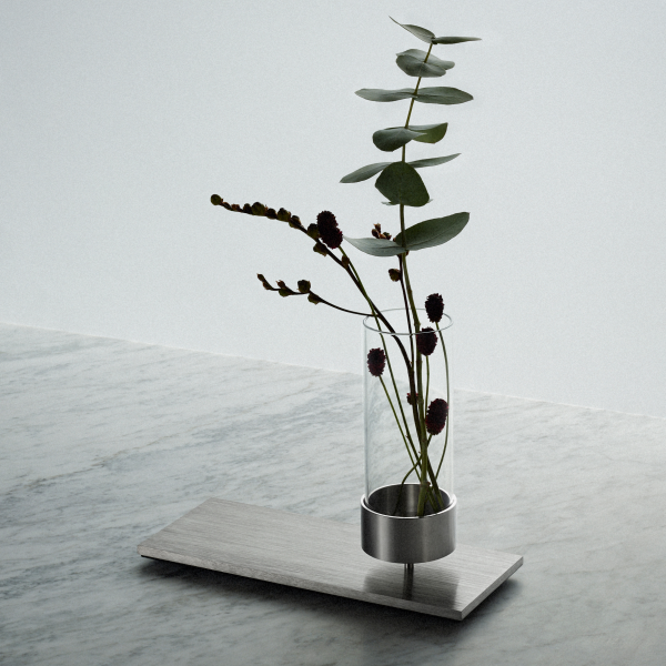 The MACHINED coaster is made of high-quality brushed metal and is complemented by a hand-blown glass vase. The product is available in three finishes: black, brass and steel. Thanks to the beautiful gift packaging in which MACHINED comes, you can also charm your loved ones.
