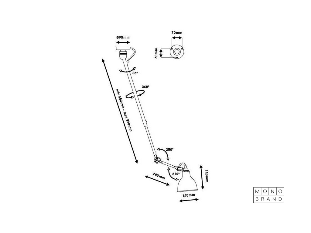 min 54 cm - max 92 cm | Rod : 20 cm