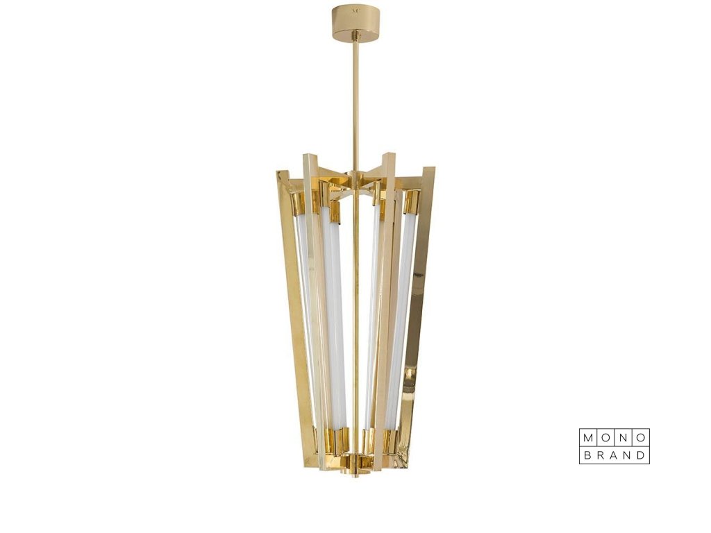 Tento kousek, inspirovaný světem kabaretu 20. let minulého století, kombinuje čistou formu s pevně strukturovanou estetikou díky použití vysoce hodnotných materiálů a tradičních řemeslných technik. Jeho variabilní výška (délka hřídele je vyrobena na míru) otevírá mnoho možností: může být zcela jednoduše umístěn tradičně nad stolem, ale stejně tak může být spojen s nábytkem jako konverzační kousek...