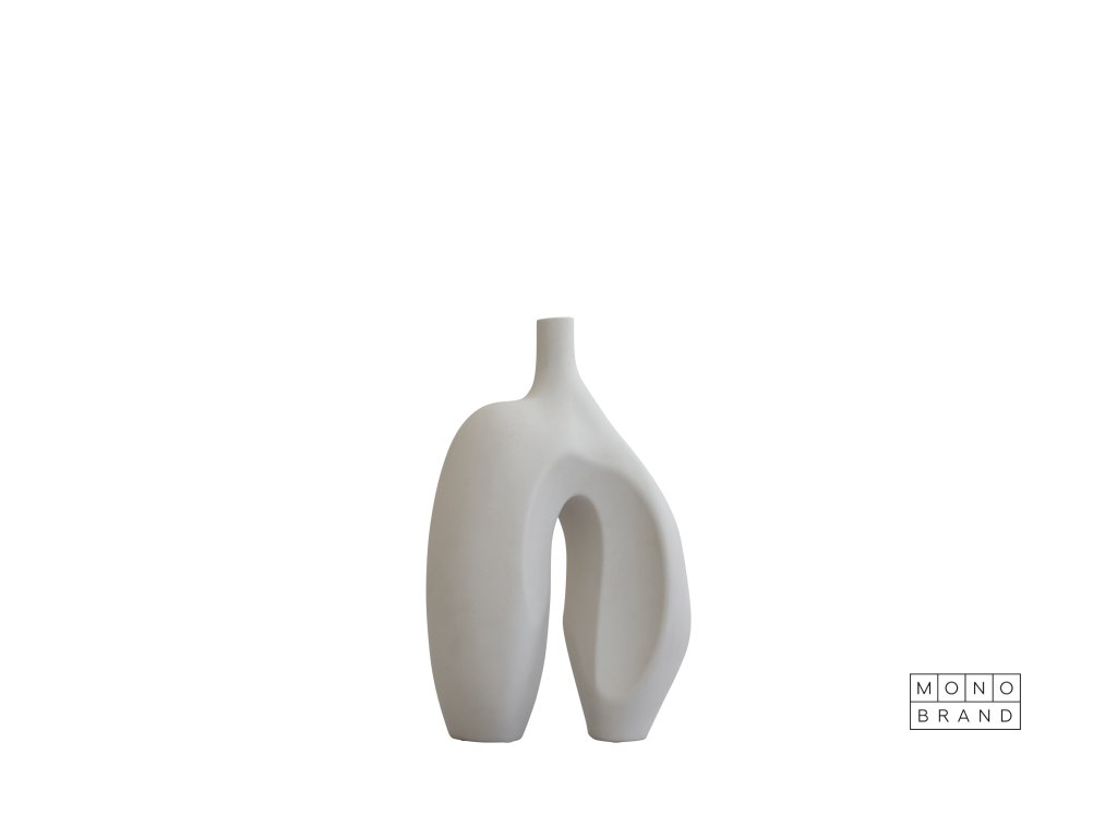 Design se vyznačuje dvěma sochařskými nohami, které se setkávají v centrálním bodě, a vytváří tak jemný pocit rovnováhy a napětí. Malý otvor v horní části nabízí prostor pro jednu větev, několik jemných stonků nebo minimalistickou kompozici – váza je však stejně působivá i jako samostatné umělecké dílo.